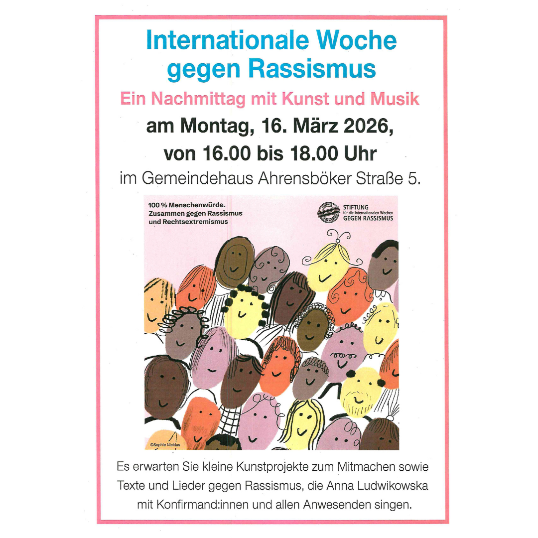 Gottesdienst mit Taufe und Begrüßung der Vikarin Kira Reggentin und Jakob Rühl (Spurensuche-Projekt mit der Gedenkstätte Ahrensbök), anschl. Gemeindeversammlung 19 Apr. 2026 10:00 - 11:00 Ort: Ev.-Luth. Kirche |
